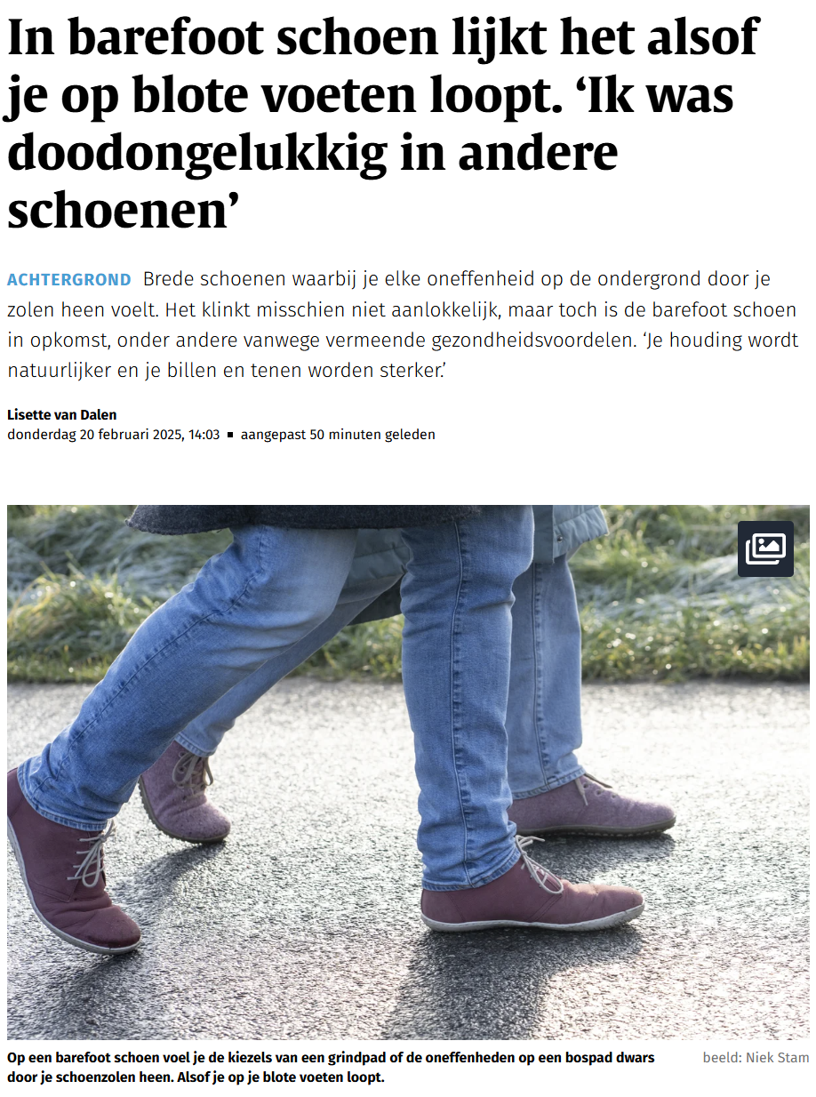 In februari 2025 werd ik geïnterviewd door een journalist van het Nederlands Dagblad. Ze wilde graag meer weten over barefoot schoenen.