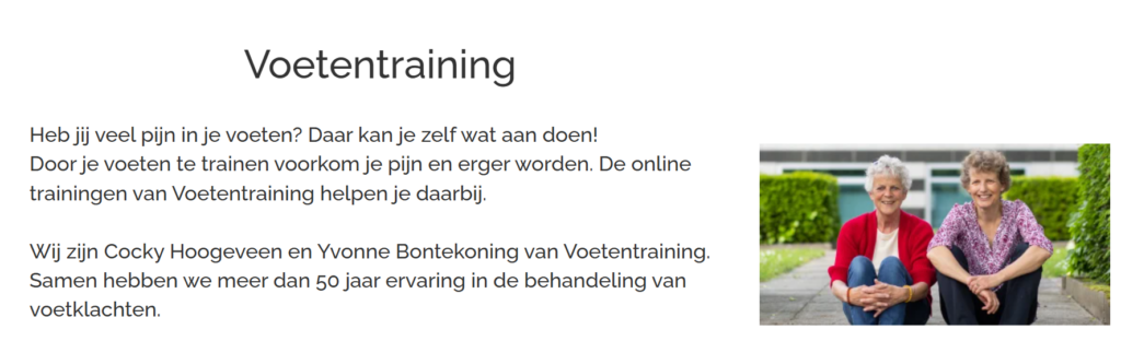 Voor wie zonder operatie zijn hallux valgus zo recht mogelijk wil zetten, raad ik je de webinar van Voetentraining aan. Versterk je voeten met praktische training