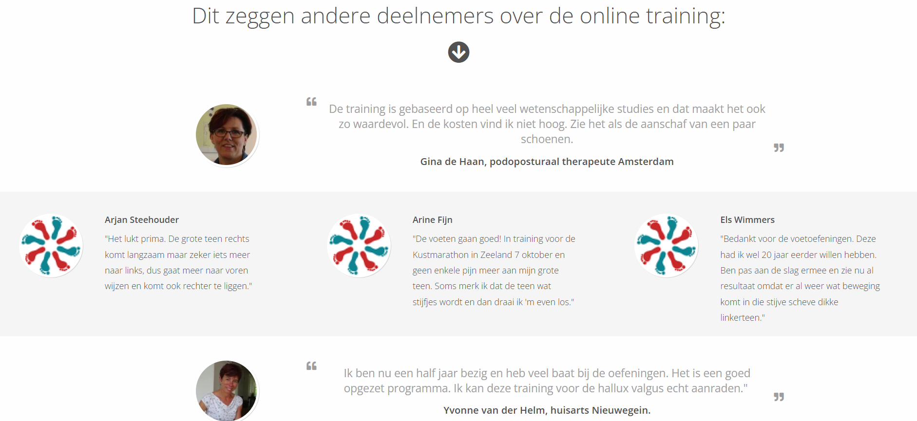 Hoewel niet elke tip voor iedereen werkt, merk ik persoonlijk dat het goed mogelijk is om zo goed als pijnvrij te leven met een hallux valgus. Als je maar de juiste keuzes durft te maken die soms estetisch (schoenen) en financieel (training) niet even leuk zijn. Maar zeg nou zelf: wat is er belangrijker dan je gezondheid? Je kunt in ieder geval gratis beginnen met de training en onderstaande webinar.